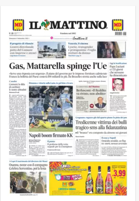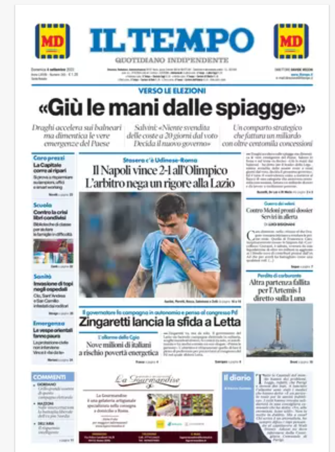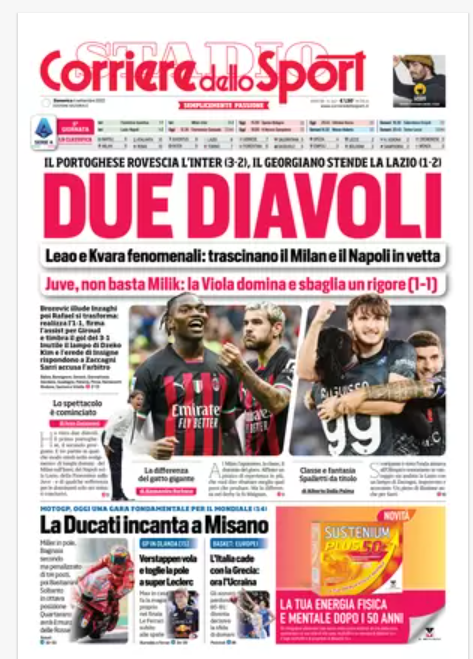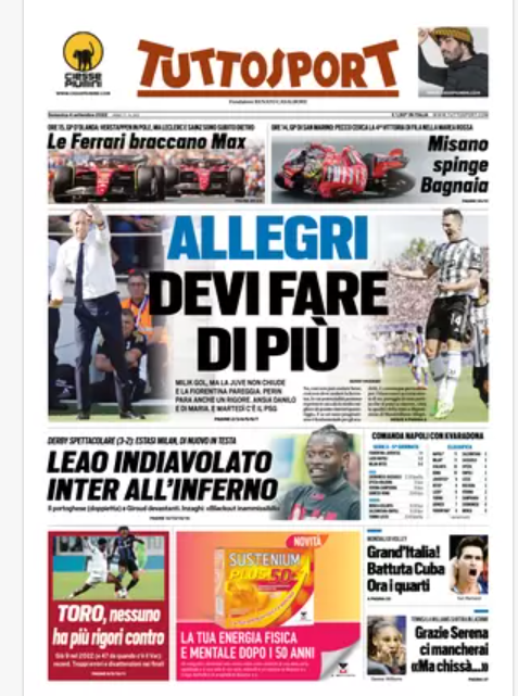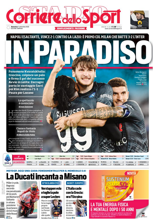 Rassegna stampa del 4 settembre. “PRIME PAGINE SPORTIVE”