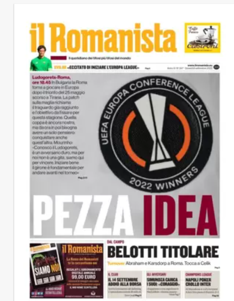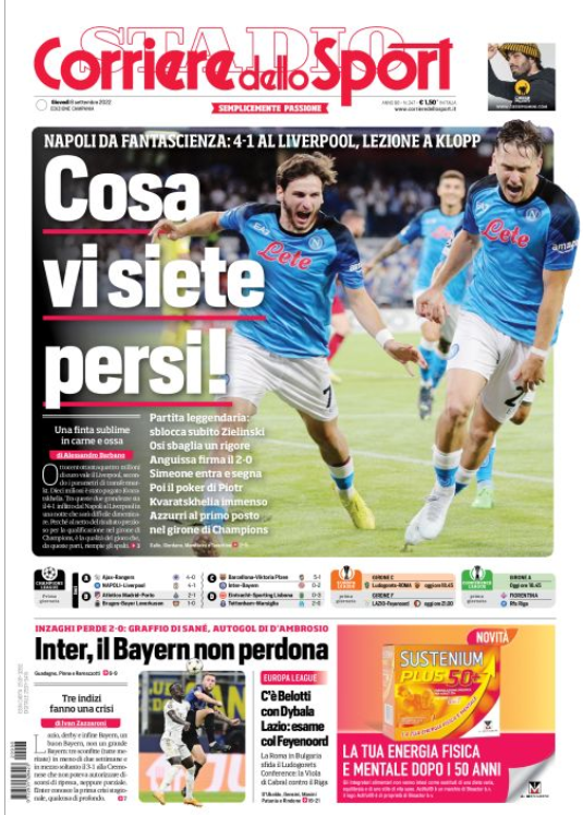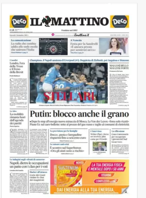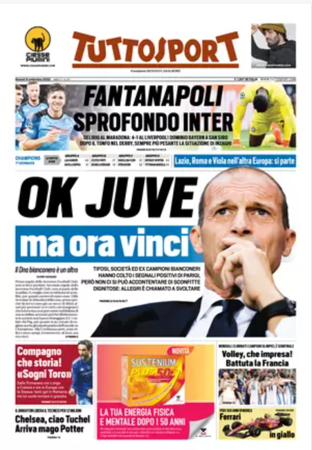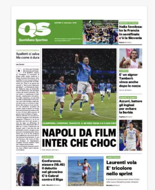 Rassegna stampa dell’8 settembre – “PRIME PAGINE SPORTIVE”