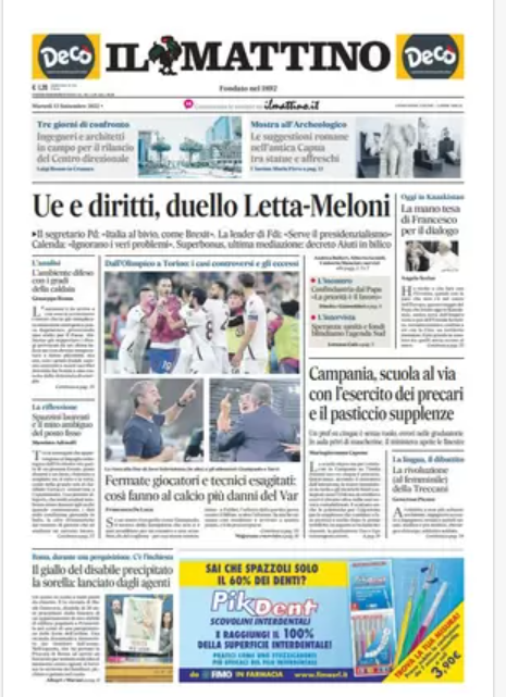 NewsCalcioIn Evidenza Rassegna stampa del 13 settembre – “Prime pagine sportive” By Alessandro Sacco il Set 13, 2022 - 07:50:58 0 Condividi In primo piano sui principali quotidiani sportivi nazionali Factory della Comunicazione CalcioNapoliRassegnaStampa 0 Condividi FacebookTwitterGoogle+ReddItWhatsAppPinterestE-mail