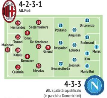 Da “Il Mattino” le probabili formazioni di Napoli e Milan
