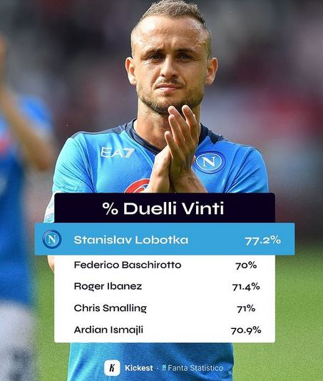 Tutto nelle mani di Stanislav Lobotka: il Napoli di Luciano Spalletti ha trovato il suo playmaker ideale con lo slovacco che in mezzo al campo è ormai imprescindibile per gli azzurri. E i numeri lo dimostrano: come svelato da Kickest, infatti, dei 144 calciatori che nelle prime sette giornate di Serie A hanno instaurato almeno 40 volte un duello con un giocatore avversario attraverso un dribbling, un tackle o un colpo di testa, quello che ne è uscito in percentuale più volte vincitore, ottenendo il possesso del pallone è stato proprio Lobotka, che ha vinto nel 77,2% dei casi.