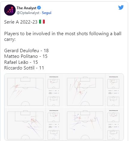 Secondo l’ultimo studio di Opta, infatti, Politano è il secondo calciatore del campionato con più conclusioni (15) verso la porta avversaria dopo una corsa palla al piede. Una classifica peciale che vede l’azzurro fianco a fianco a uno specialista come Leao, davanti a Sottil e dietro solo a Deulofeu (18). Fonte: mattino.it