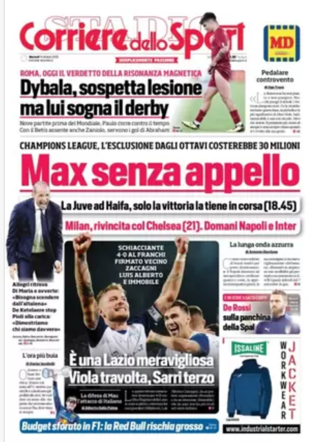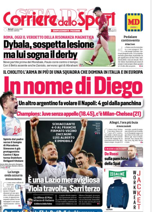 Rassegna stampa del 11 ottobre. “PRIME PAGINE SPORTIVE”