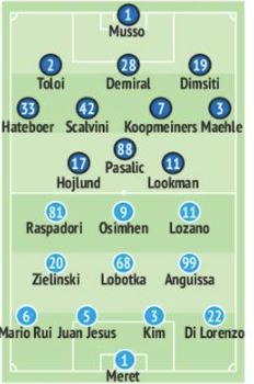 “IL MATTINO” mette in campo Napoli e Atalanta (Le formazioni)