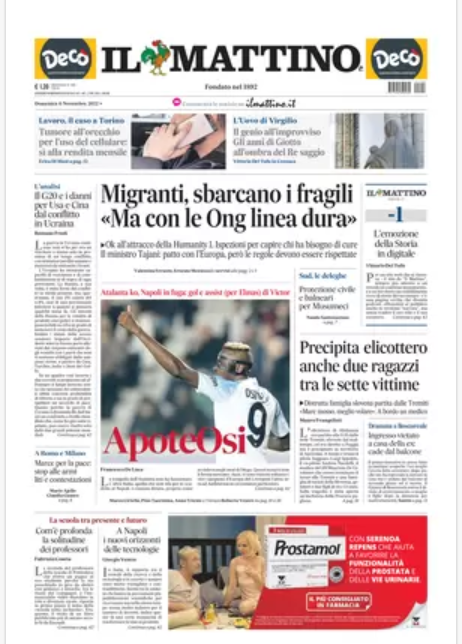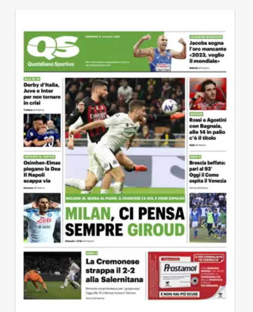 “PRIME PAGINE SPORTIVE”. La rassegna stampa del 6 novembre
