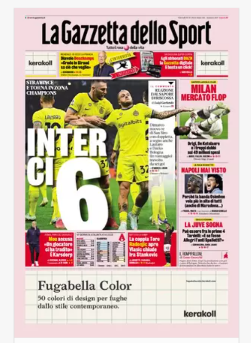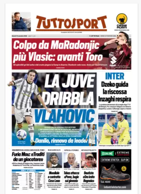 NewsCalcioIn Evidenza Rassegna stampa del 10 novembre – “PRIME PAGINE SPORTIVE” By Alessandro Sacco il Nov 10, 2022 - 08:20:08 0 Condividi In primo piano sui principali quotidiani sportivi nazionali Factory della Comunicazione CalcioNapoliRassegnaStampa 0 Condividi FacebookTwitterGoogle+ReddItWhatsAppPinterestE-mail