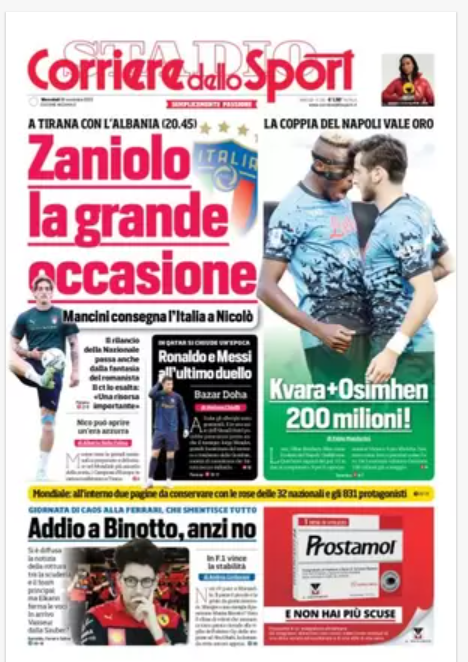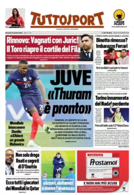 “PRIME PAGINE SPORTIVE”. La rassegna stampa del 16 novembre