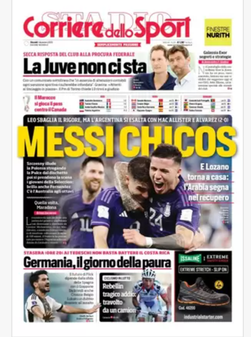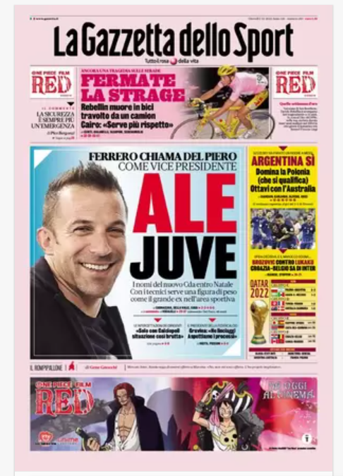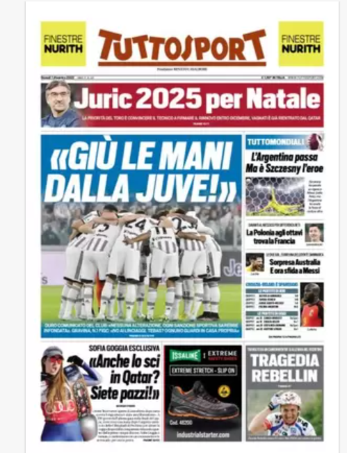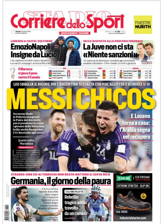 “PRIME PAGINE SPORTIVE”. Rassegna stampa del 1° dicembre