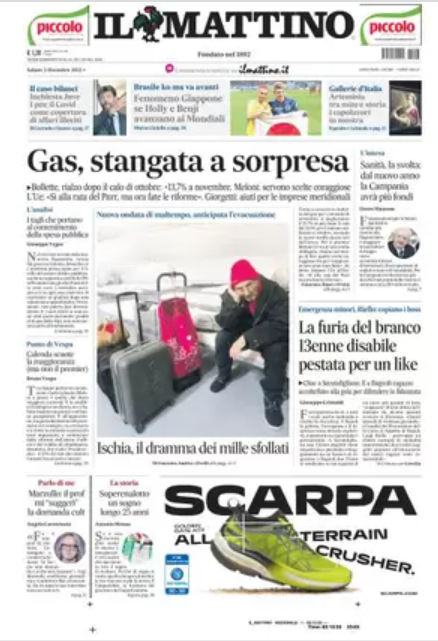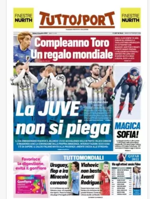“PRIME PAGINE SPORTIVE”. Rassegna stampa del 3 dicembre
