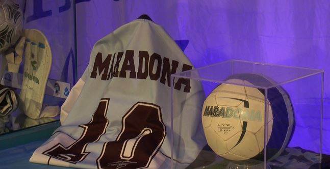 Diego in chiesa. Non è una bestemmia per chi considera Maradona una divinità. La chiesa di Santa Maria Stella Maris, nei pressi dell’Archivio di Stato, ospita per un mese, fino all’Epifania, la mostra di tanti oggetti appartenuti a Maradona. E’ stata affidata all’associazione “I sedili di Napoli” che ha invitato Massimo Vignati, titolare del museo dedicato al Capitano nel quartiere di Miano, ad esporre i pezzi di questa straordinaria collezione. E Massimo si è messo subito a disposizione. L’inaugurazione nel giorno dell’Immacolata. Vi ha partecipato il professore Edoardo Cosenza, assessore comunale ai lavori pubblici. Non come istituzione ma come abbonato della curva B. Scarpette, palloni, maglie. Momenti di una storia che va dalla prima casacca del 1984, quella con il marchio Cirio, all’addio al calcio celebrato nella Bombonera di Buenos Aires, anno 2001, con una festa alla quale invitò tanti amici (e un solo calciatore italiano, anzi napoletano: Ciro Ferrara), quella in cui tra le lacrime ammise davanti a tutti i suoi errori e sospirò: «Il pallone non si macchia». Ci sono in bella mostra le maglie con gli scudetti dell’87 e del ’90, i pantaloncini e le scarpette della finale di Mexico ’86, la giacca a vento indossata durante il riscaldamento prepartita più celebre nel calcio, quello allo stadio di Monaco di Baviera prima della semifinale Uefa contro il Bayern, magici tocchi al pallone sulle note di Live is Live che tramutarono in applausi i fischi dei tedeschi. Un tuffo nel passato. Anzi, nel presente. Perché Diego c’é.