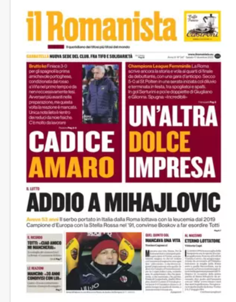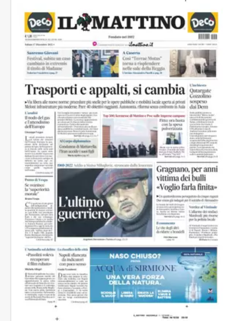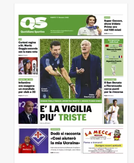 “PRIME PAGINE SPORTIVE”. Rassegna stampa del 17 dicembre