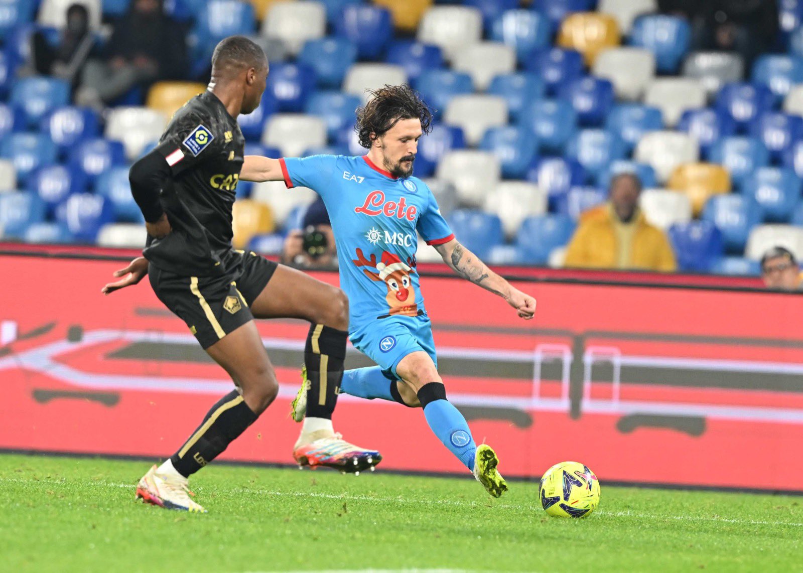 Per il Napoli, maglia natalizia, Di Lorenzo. Per il Lille, casacca nera, Fonte. L’arbitro è il napoletano del Vomero, Fabio Maresca