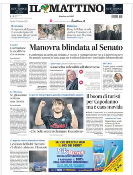 NewsCalcioRassegna Stampa Rassegna stampa del 27 dicembre. “PRIME PAGINE SPORTIVE” By Alessandro Sacco il Dic 27, 2022 - 07:20:04 0 Condividi In primo piano sui principali quotidiani sportivi nazionali Factory della Comunicazione CalcioNapoliRassegnaStampa 0 Condividi FacebookTwitterGoogle+ReddItWhatsAppPinterestE-mail