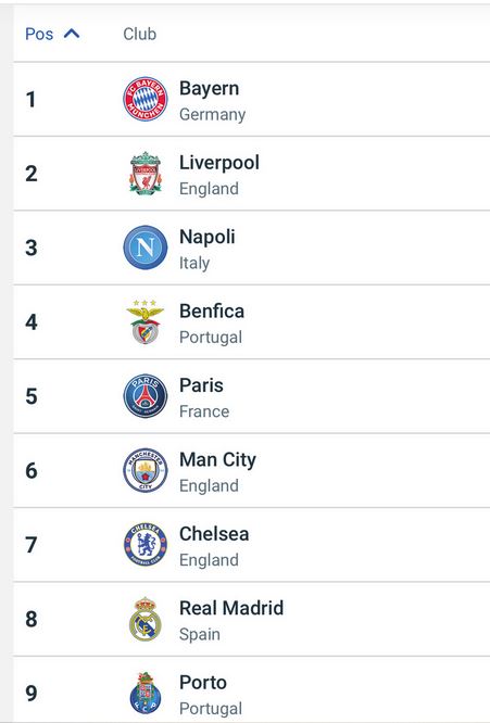 Il Napoli chiude al momento al terzo posto, in attesa di tornare in campo a febbraio per gli ottavi. La seconda italiana in classifica è il Milan, al 13º posto. fonte: mattino.it