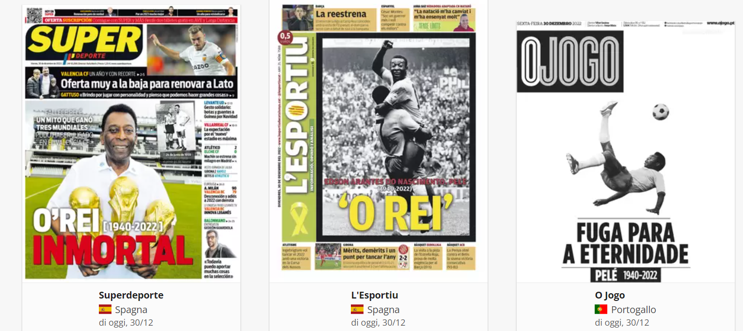 NewsCalcioRassegna Stampa Tutte le prime pagine del mondo sono per PELE’ (Foto) By Alessandro Sacco il Dic 30, 2022 - 08:15:26 0 Condividi Così la stampa mondiale Factory della Comunicazione Calcio;peleMondoPagineprime 0 Condividi FacebookTwitterGoogle+ReddItWhatsAppPinterestE-mail