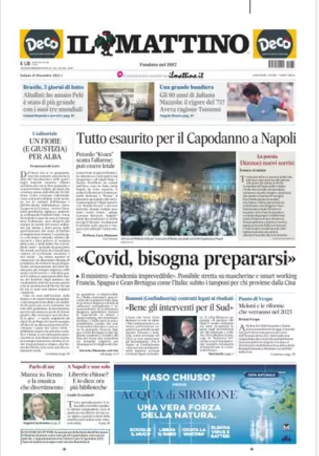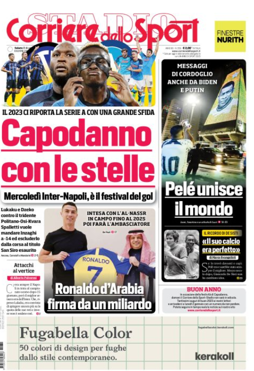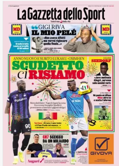 NewsCalcioRassegna Stampa “PRIME PAGINE SPORTIVE”. Rassegna stampa del 31 dicembre By Alessandro Sacco il Dic 31, 2022 - 08:00:51 0 Condividi In primo piano sui principali quotidiani sportivi nazionali Factory della Comunicazione CalcioNapoliRassegnaStampa 0 Condividi FacebookTwitterGoogle+ReddItWhatsAppPinterestE-mail