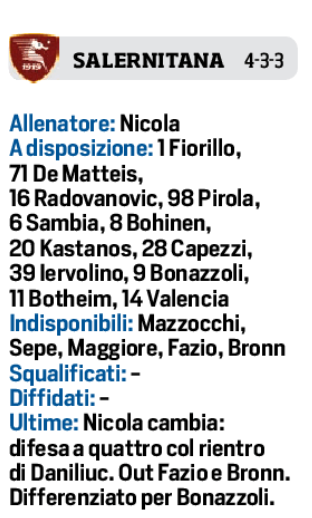 (Formazioni) Salernitana-Napoli, dubbio in attacco per Nicola. Ballottaggio per Spalletti