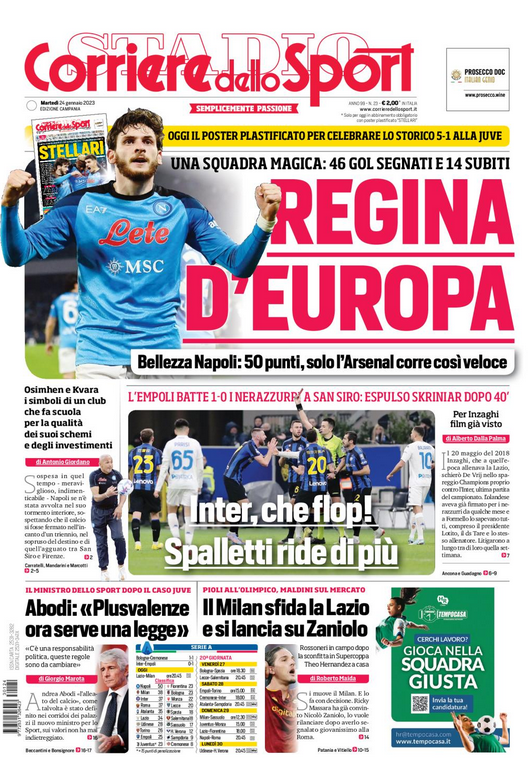 NewsCalcioIn Evidenza “PRIME PAGINE SPORTIVE”. Rassegna stampa del 24 gennaio By Giuseppe Sacco il Gen 24, 2023 - 08:00:07 0 Condividi In primo piano sui principali quotidiani sportivi nazionali Factory della Comunicazione CalcioNapoliRassegnaStampa 0 Condividi FacebookTwitterGoogle+ReddItWhatsAppPinterestE-mail