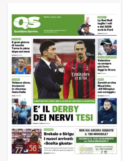 NewsCalcioIn Evidenza “RASSEGNA STAMPA SPORTIVA” del 4 febbraio By Giuseppe Sacco il Feb 4, 2023 - 08:00:53 0 Condividi In primo piano sui principali quotidiani sportivi nazionali Factory della Comunicazione CalcioNapoliRassegnaSportiva 0 Condividi FacebookTwitterGoogle+ReddItWhatsAppPinterestE-mail
