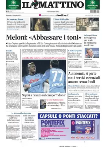 Rassegna StampaCalcioNews “Rassegna stampa sportiva” del 5 febbraio By Giuseppe Sacco il Feb 5, 2023 - 08:00:04 0 Condividi In prima pagina sui principali quotidiani sportivi nazionali Factory della Comunicazione CalcioNapoliRassegnaSportiva 0 Condividi FacebookTwitterGoogle+ReddItWhatsAppPinterestE-mail