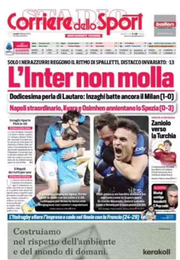 NewsCalcioIn Evidenza “PRIME PAGINE SPORTIVE”. Rassegna stampa del 6 febbraio By Giuseppe Sacco il Feb 6, 2023 - 07:20:28 0 Condividi In primo piano sui principali quotidiani sportivi nazionali Factory della Comunicazione NapoliPagineprimeRassegna 0 Condividi FacebookTwitterGoogle+ReddItWhatsAppPinterestE-mail