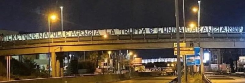 L’eco dei problemi durante la vendita dei tagliandi azzurri per Eintracht-Napoli non si arresta. E anche gli ultras in città hanno fatto sentire la propria voce: «Ticketone, Napoli e agenzia. La truffa è l’unica garanzia» lo striscione apparso in queste ore e firmato dai Vecchi Lions.