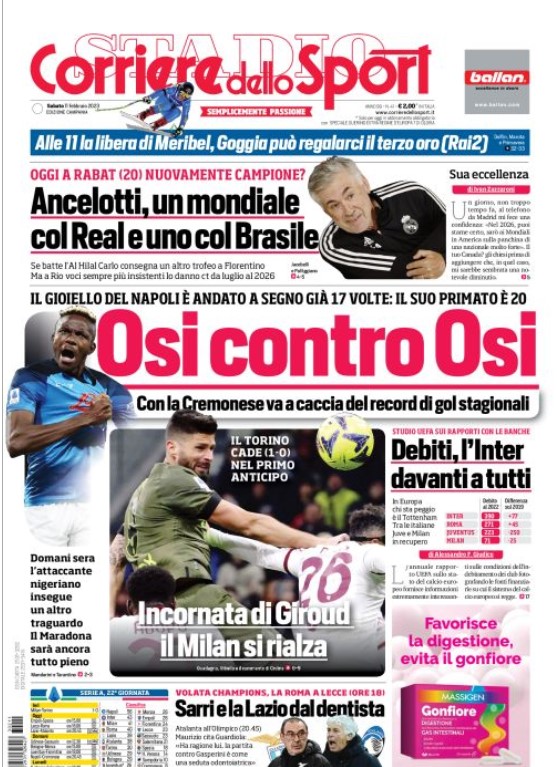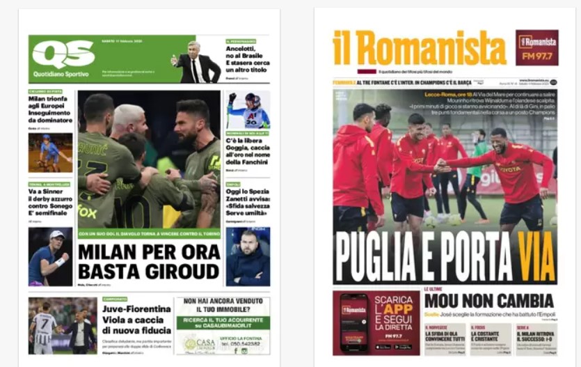 “PRIME PAGINE SPORTIVE”. Rassegna stampa dell’11 febbraio