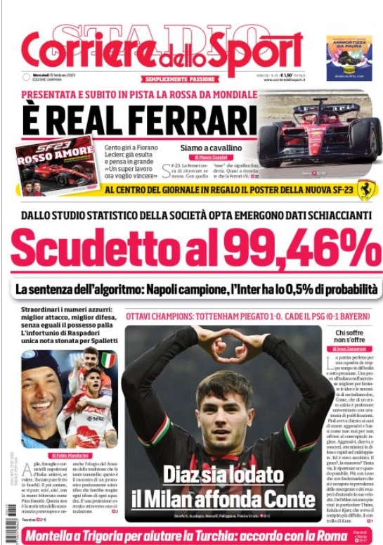 NewsCalcioIn Evidenza “PRIME PAGINE SPORTIVE”. Rassegna stampa del 15 febbraio By Giuseppe Sacco il Feb 15, 2023 - 08:20:47 0 Condividi In primo piano sui principali quotidiani sportivi nazionali Factory della Comunicazione Calcio.RassegnaPagineprimeSport 0 Condividi FacebookTwitterGoogle+ReddItWhatsAppPinterestE-mail