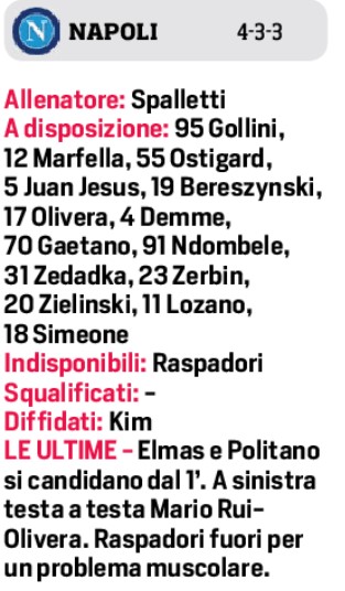 Come terzino sinistro scalpita Olivera, anche se parte in vantaggio ancora Mario Rui