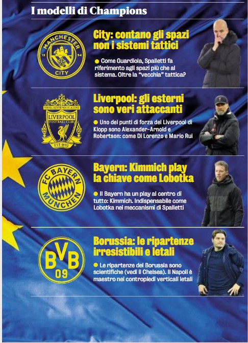 E ancora non abbiamo visto City, Real Madrid e Liverpool. Ma già Bayern, Borussia, Psg, Chelsea e il sorprendente Benfica dal movimentismo impressionante hanno spiegato che la Champions “dentro o fuori” resta il vero torneo di spettacolo, velocità, gioco offensivo, contro-pressing, ripartenze letali. Gestione, questa sconosciuta. Anche il Milan, ispirato forse dalla musichetta, ha ritrovato principi e coraggio mancati negli ultimi tempi. Martedì toccherà al Napoli, la più bella della fase a gruppi con City e Bayern, anche perché la più europea nei modelli e nell’interpretazione. Nella squadra di Spalletti, aspirante big, si vedono segni caratteristici delle big di Champions.