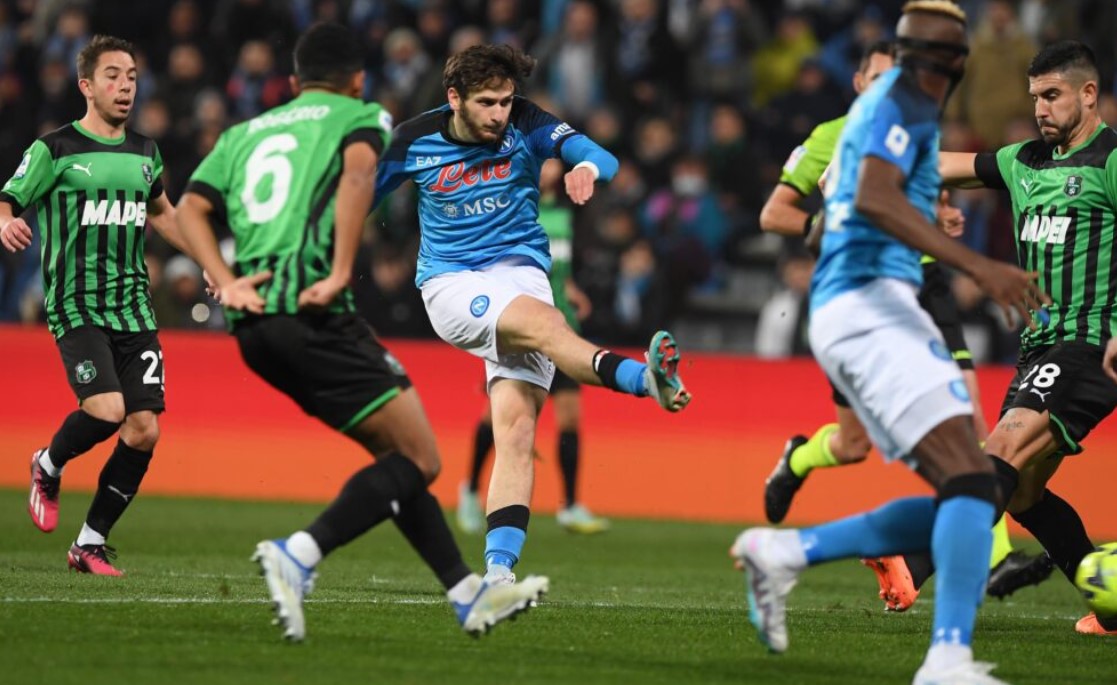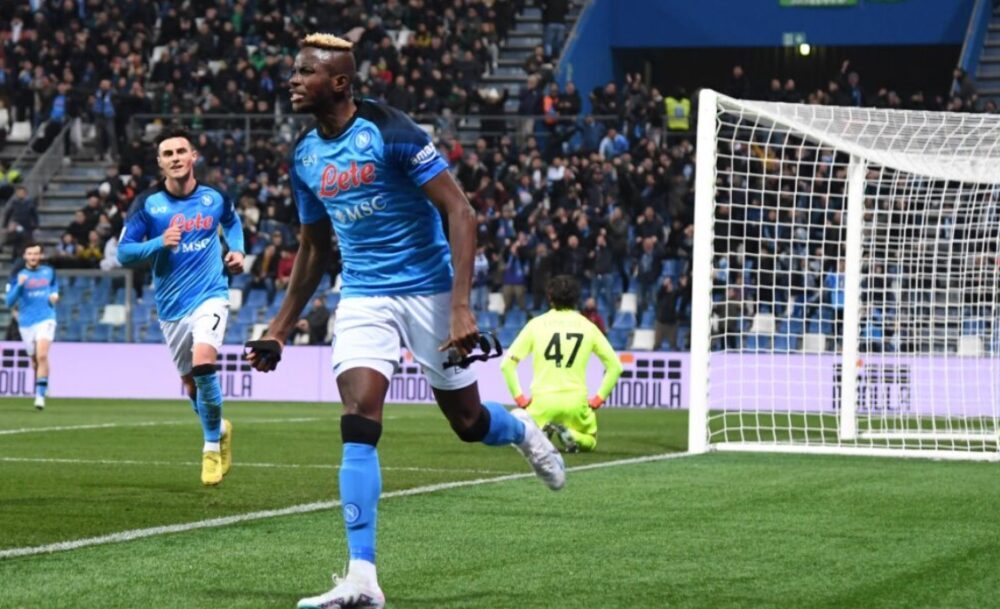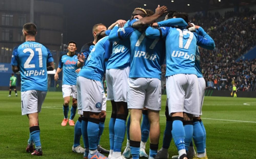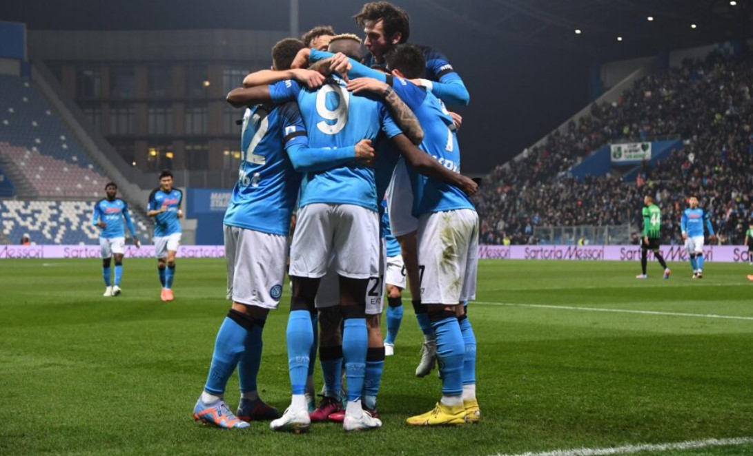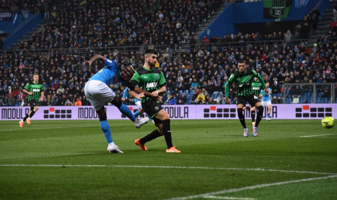 Il terzo colpo del KO in 12 giorni. Ancora i gemelli del gol, Kvara e Osimhen, il genio della Lampada e il Supereroe Mascherato. Il Napoli vince a Reggio Emilia, così come aveva vinto a La Spezia e contro la Cremonese al Maradona. Gol di Kvaratskhelia e Osimhen, un mantra che riempie l’anima, una filastrocca che scandice le favole dei bambini. Khvicha e Victor non alimentano solo la letteratura e il romanzo popolare ma riscrivono anche i teoremi algebrici segnando 7 gol in combinata in 3 gare consecutive e dando vita a un sistema binario che entra nelle sequenze più sofisticate ed esponenziali del calcio spettacolo. Il primo di Kvara è un pezzo di arte contemporanea: slalom sulla Via Emilia e destro disegnato col pennello. Il secondo di Osi è un bassorilievo dadaista: diagonale impossibile che infila la bisettrice tra potenza e precisione. La Galleria azzurra espone altre due opere d’autore da stampare sulla copertina della Serie A. Il Napoli sfonda il tetto dei sessanta, ne conta 62 in virtù della 20esima vittoria in campionato su 23 gare e il settimo successo consecutivo. Da inizio gennaio a metà febbraio è partito un Intercity Freccia Azzurra che non conosce stazioni. E adesso si viaggia oltre confine, sul red carpet della Champions League. L’avventura continua tra le stelle più luminose d’Europa…