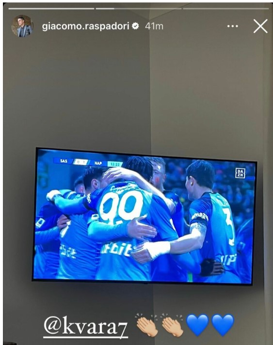 Jack l’ultrà, da casa applaude a Kvara e posta sul social