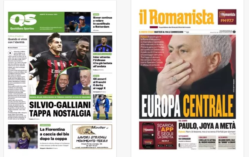Rassegna stampa del 18 febbraio. “PRIME PAGINE SPORTIVE”