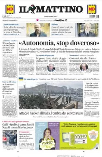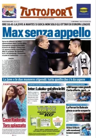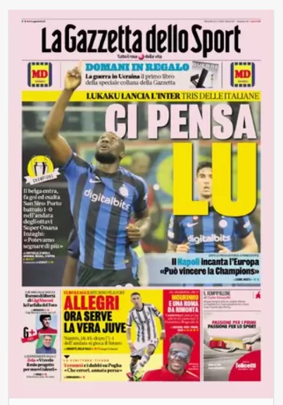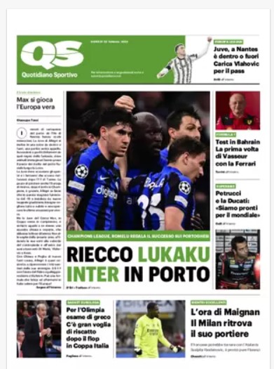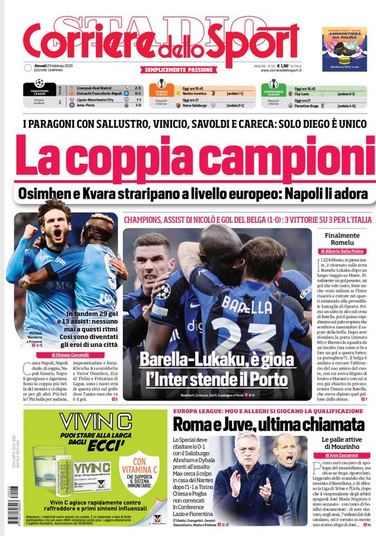 Rassegna StampaCalcioIn Evidenza Rassegna stampa del 23 febbraio. “PRIME PAGINE SPORTIVE” By Giuseppe Sacco il Feb 23, 2023 - 07:20:33 0 Condividi In primo piano sui principali quotidiani sportivi nazionali Factory della Comunicazione CalcioNapoliRassegnaSportiva 0 Condividi FacebookTwitterGoogle+ReddItWhatsAppPinterestE-mail