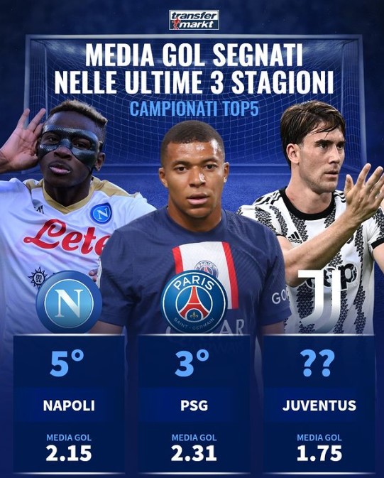 130 partite giocate e 279 gol segnati: nessuno in Italia fa più gol del Napoli a cavallo tra Gattuso e Spalletti. Gli azzurri sono primi nella speciale classifica delineata dall’ultimo studio Transfermarkt con davanti solo le big degli altri campionati europei. 2,15 gol a partita, una media impreziosita dalla fantastica stagione degli uomini di Spalletti, lanciati ormai quest’anno verso la conquista dello scudetto.