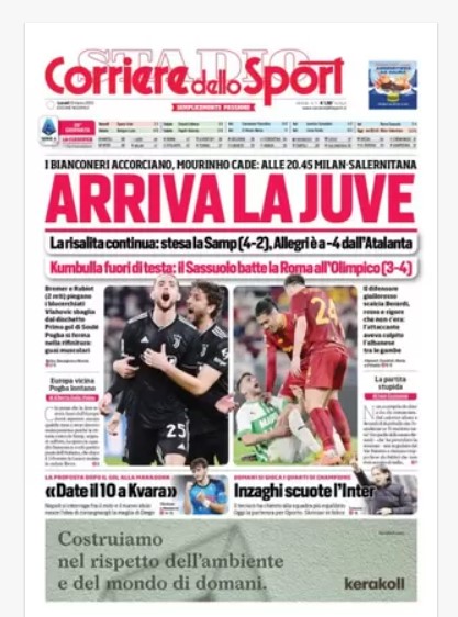 NewsCalcioIn Evidenza “PRIME PAGINE SPORTIVE”. Rassegna stampa del 13 marzo By Giuseppe Sacco il Mar 13, 2023 - 08:00:08 0 Condividi In primo piano sui principali quotidiani sportivi nazionali Factory della Comunicazione CalcioNapoliRassegnaStampa 0 Condividi FacebookTwitterGoogle+ReddItWhatsAppPinterestE-mail