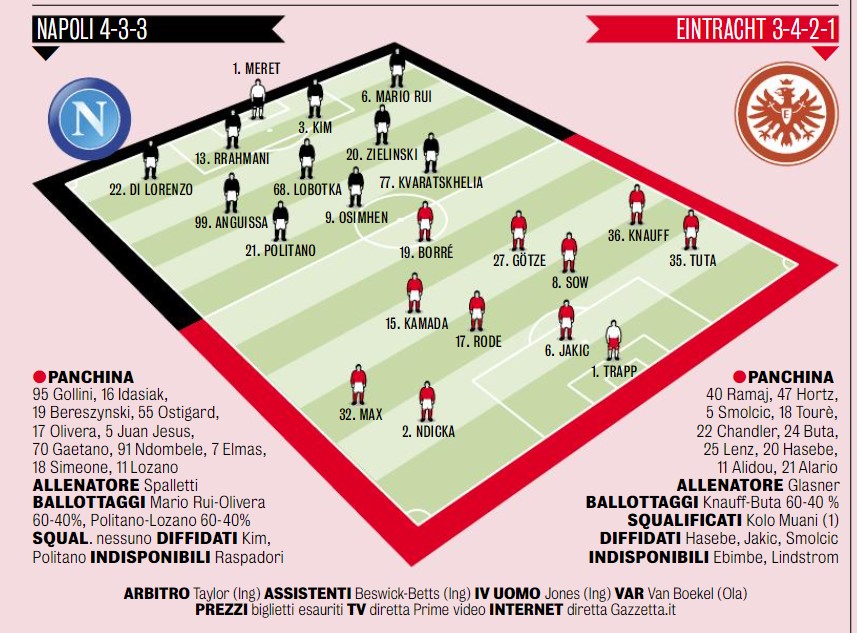 La Gazzetta dello Sport riporta le ultime di formazione di Napoli-Eintracht: