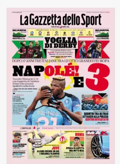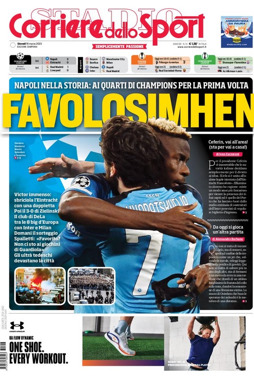 “PRIME PAGINE SPORTIVE”. Rassegna stampa del 16 marzo