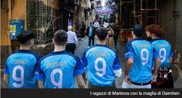 Scudetto al Napoli, 5 ragazzi di Mantova con la maglia di Osimhen: «Tifiamo altre squadre, ci avete fatto innamorare»