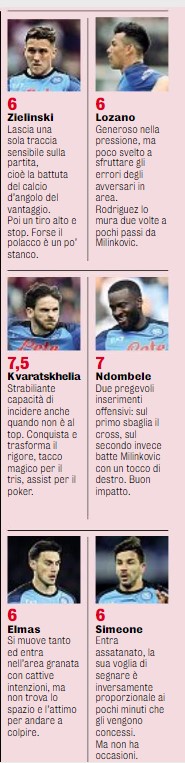 La Gazzetta vota gli azzurri: Il nigeriano a segno 21 volte, il georgiano 12