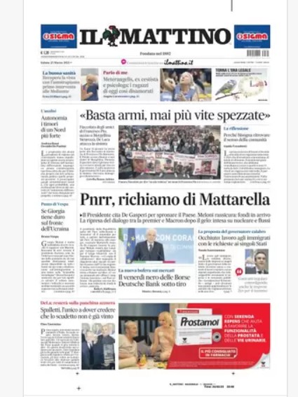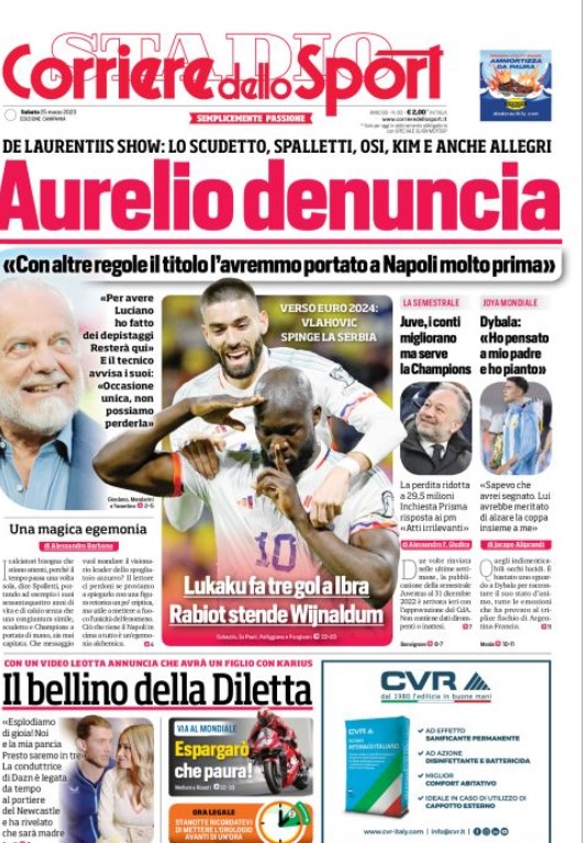 NewsCalcioIn Evidenza “PRIME PAGINE SPORTIVE”. Rassegna stampa del 25 marzo By Giuseppe Sacco il Mar 25, 2023 - 08:01:03 0 Condividi In primo piano sui principali quotidiani sportivi nazionali Factory della Comunicazione CalcioNapoliRassegnaStampa 0 Condividi FacebookTwitterGoogle+ReddItWhatsAppPinterestE-mail
