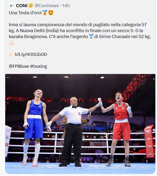NewsRassegna Stampa La SSC Napoli celebra la campionessa del Mondo Irma Testa By Giuseppe Sacco il Mar 26, 2023 - 11:20:57 0 Condividi Dalle pagine social del Napoli Factory della Comunicazione CalciNapoli.PugilatoTesta 0 Condividi FacebookTwitterGoogle+ReddItWhatsAppPinterestE-mail