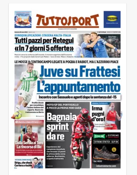 “RASSEGNA STAMPA SPORTIVA” del 26 marzo. Le prime pagine