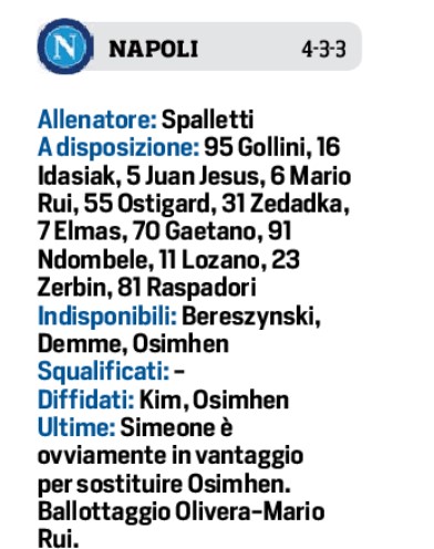 (Formazioni) – Poteva essere Osimhen/Giroud, ci sarà il Cholito