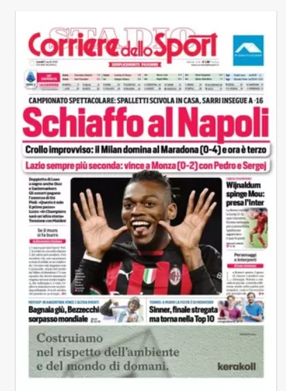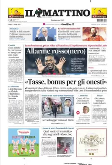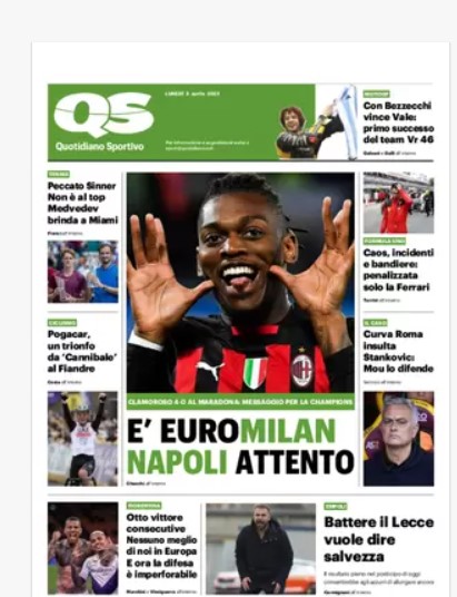 NewsCalcioIn Evidenza Rassegna stampa del 3 aprile. “PRIME PAGINE SPORTIVE” By Giuseppe Sacco il Apr 3, 2023 - 07:15:21 0 Condividi In primo piano sui principali quotidiani sportivi nazionali Factory della Comunicazione CalcioNapoliRassegnaStampa 0 Condividi FacebookTwitterGoogle+ReddItWhatsAppPinterestE-mail