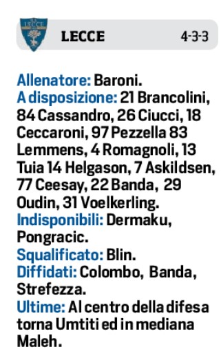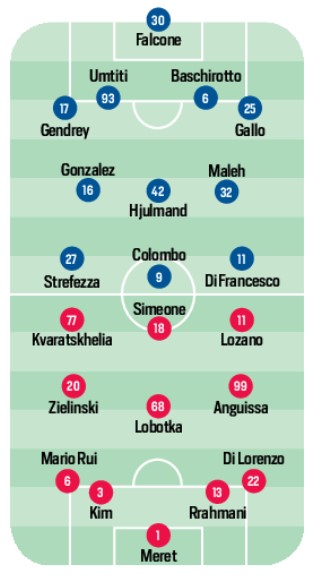 Spalletti sembra orientato a puntare sul blocco di domenica e dunque a confermare la maggior parte dei giocatori schierati nella sfida con i rossoneri. I pochi cambi sul tavolo del signor Luciano riguardano, per il momento, il tridente e il centrocampo. Già, in attesa della rifinitura in agenda oggi al centro sportivo di Castel Volturno prima della partenza per Lecce, la formazione iniziale dovrebbe contemplare Meret in porta; Di Lorenzo, Rrahmani, Kim e Mario Rui in difesa; Anguissa, Lobotka e uno tra Elmas e Zielinski nel tris di mediana; e un tridente con Lozano al posto di Politano, Simeone e Kvara. Olivera dovrebbe recuperare, mentre Osimhen continua la corsa della speranza verso la Champions: terapie e poi ancora. E una mascherina nuova, personalizzata: VO9.