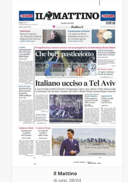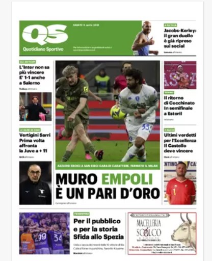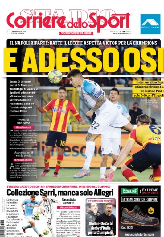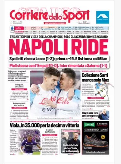 “PRIME PAGINE SPORIVE”. Rassegna stampa dell’ 8 aprile