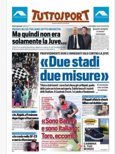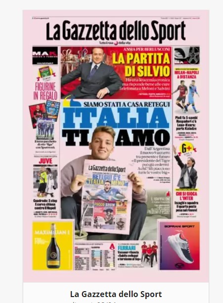 In prima pagina sui principali quotidiani sportivi nazionali