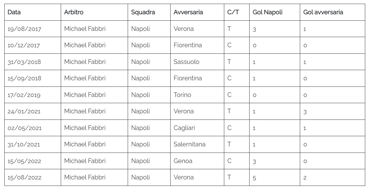 L’arbitro Michael Fabbri di Ravenna a dirigere Juventus-Napoli, 31esima giornata di Serie A. Di seguito una tabella che indica i precedenti del direttore di gara col Napoli.