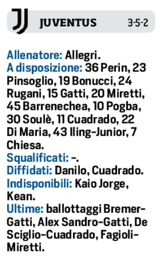 (Formazioni) Juventus e Napoli, così il Cds le vede in campo